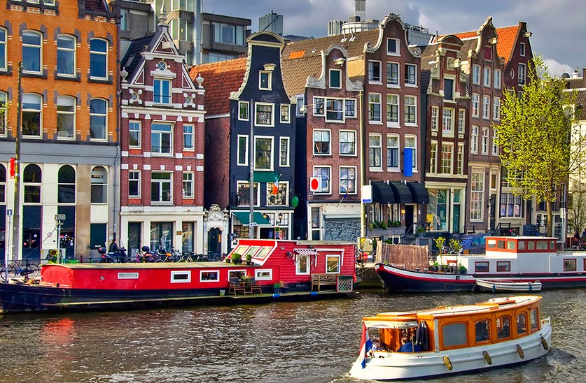Историческая часть Амстердама расположена вдоль каналов Херенграхт, Кайзерграхт, Принсенграхт, прорытых еще в XIV веке. Здесь в неизменном виде ( охранились здания XVII —XVIII вв., которые придают городу особые, неповторимые черты. Наибольшее внимание привлекают королевский дворец (архитектор Якоб Кампен) и церковь Весткерк. Но архитектурный расцвет Амстердама пришелся на конец XIX — начало XX вв. В это время были построены здания Центрального вокзала, Рейксмузеум и множество церквей в неоготическом стиле. В противовес им в так называемом амстердамском стиле выполнены Дом советов Спаарндамменстраат и театр Тучинский. Очень интересна архитектура послевоенных Дома бюргера, Дома матери, Дома студента Монтрессори.
