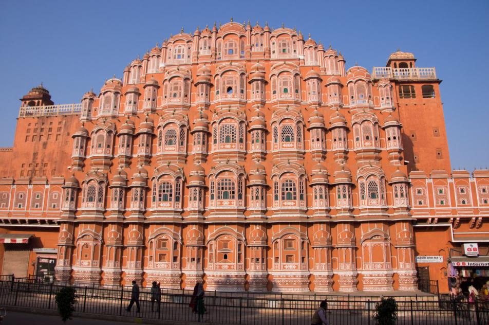Джайпур представляет собой прекраснейший из индусских городов; он красиво расположен среди амфитеатра крутых, обрывистых холмов, вершины которых увенчаны живописными укреплениями. Над городом господствует крепость Тигр, находящаяся на самой вершине утесистой, совершенно недоступной скалы. Город окружен прочной стеной каменной кладки в двадцать футов вышины и девять футов толщины с бастионами и башнями, расположенными через правильные промежутки. Дворец и сады магараджи занимают седьмую часть всего города. Главный вход во дворец находится в самой центральной части города напротив колледжа. Единственная часть дворца, видимая с улицы, есть не что иное, как знаменитая Хава-Махал, или Дворец Ветров. Он представляет собой один из самых любопытных образцов восточной архитектуры. Он построен из красивого розового и молочно-белого кафеля. Разнообразные рисунки изящного орнамента каждого окна отличаются редкостной красотой, но бесчисленное множество этих окон придает зданию странный вид. Известный английский путешественник сэр Эдвин Арнольд в следующих словах выразил свое восхищение: он называет его, прекрасным, смелым фантастическим сооружением из розового кафеля в девять этажей с изящными висячими балкончиками и решетчатыми окнами, поднимающимся вверх ярус за ярусом в виде пирамиды причудливой архитектуры, настоящей горой воздушной, смелой, дивной формы, сквозь бесчисленные сквозные решетки и золоченые арки которой свежий индийский ветер свободно гуляет через крыши самых высоких домов.