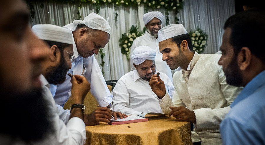 Свадебное торжество обычно начинается только ближе к вечеру. Утром жених и невеста едут в парикмахерскую, чтобы привести себя в порядок. Невеста в этот день может надеть любое открытое платье. Дело в том, что мусульманке нельзя показывать чужим мужчинам свое тело, кроме лица, кистей рук и ступней, поэтому она всегда одевается таким образом, чтобы как можно тщательнее скрыть свое тело.