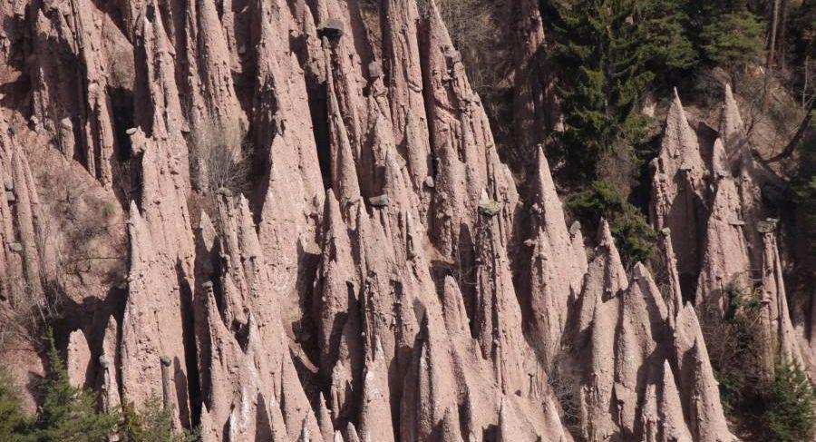 В Альпах существует много таких глиняных колонн. Колонны в фут или в полфута вышины можно встретить почти в каждой ледниковой морене. Какой величины достигнут они в будущем, это зависит от глубины глинистой почвы, а также от устойчивости гранитной шапки. Однако, вследствие мелкости глинистой почвы, альпийские глиняные столбы не могут сравняться величиной со своими американскими собратьями, возвышающимися в грандиозных каньонах Нового Света. Во всех других отношениях они, однако, сходны с ними, и в настоящее время в Альпах существует много вполне законченных примеров этих геологических явлений, самые же замечательные столбы находятся в Швейцарии в Валлисском кантоне.