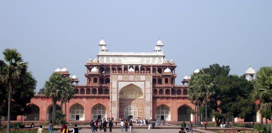 Еще при жизни Акбар выстроил себе великолепную гробницу в Сикандре, предместье его столицы Агры. Поступая таким образом, он только следовал примеру многих восточных монархов; но здание, воздвигнутое им, как выражается Фергюссон, лучший знаток восточной архитектуры, «совершенно не похоже на другие гробницы, выстроенные в Индии до него и после него, и по идее, как я полагаю, является подражанием индусскому или, говоря правильнее, буддистскому образцу. Оно возвышается в обширном саду, содержащемся в полном порядке, куда ведут великолепные ворота. Посреди сада на возвышенной платформе стоит гробница, имеющая пирамидальную форму.