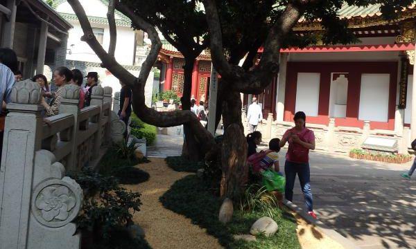 В английском пересказе местной истории говорится, что храм этот был основан буддийским монахом около 520 года по P. X. С этим монахом все мы знакомы, так как его, а не кого другого, видим мы часто на китайских чашках и блюдцах поднимающимся по реке Янцзы на легком бамбуковом плоту. Перестройка этого храма в 1755 году была благочестивым делом великого китайского императора Кин Лунга, имя которого знакомо всякому, занимающемуся собиранием фарфора. Со всеми своими храмовыми постройками, домами для духовенства и прелестными садами он занимает обширное пространство земли в предместье Гуанчжоу. Он известен также под названием Цветущего лесного монастыря и представляет собой один из богатейших храмов в городе. Большие суммы денег издерживают здесь на некоторые церемонии богатые и набожные люди.