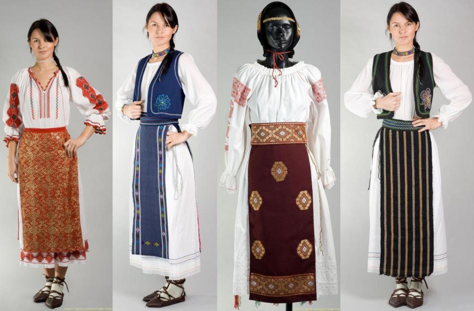 Национальные костюмы в разных регионах страны могут различаться длиной рубашки и брюк, орнаментом вышивки, формой шляпы или художественным оформлением фартуков и жилета. В большинстве областей современной Румынии жители, надевая праздничный национальный костюм, выпускают рубашки поверх брюк, что присуще больше балканским мужчинам. Венгры и саксонцы, живущие на территории Румынии, часто носят брюки из темного материала, что свидетельствует об их близкой связи с Западом.