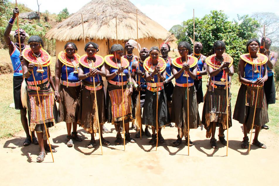 Шкура леопарда — знаковая деталь одежды. Ее могли носить только представители знати самого высшего ранга. Эта особенность характерна почти для всех народов Африки. Еще одно преимущество высокопоставленных людей — только они имели право использовать сшитую одежду. Так, у баганда тонкие полотнища из луба предназначались лишь для придворных, приближенных к правителю, и членов семьи самого правителя.