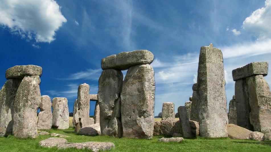 На юге Англии, на Солсберской равнине, находится, наверное, самое известное каменное мегалитическое сооружение в мире - Стоунхендж («каменное ограждение»). Согласно исследованиям ученых, Стоунхендж строился в несколько этапов, самый древний из которых относится к IV—III вв. до н. э. Круг из вертикально поставленных голубых камней диаметром почти 30 м вверху соединен каменными же перемычками, внутри - подкова из еще больших камней, весом до 50 т каждый, снаружи - концентрические крути из лунок. Памятник сориентирован на северо-восток, на точку летнего солнцестояния. Что это - храм солнца или кладбище, место для ритуалов друидов или астрономическая обсерватория, площадка для посадки НЛО, символ матери-земли или древний компьютер - вряд ли нам удастся это узнать. Рядом находятся еще несколько древних сооружений: Вудхендж, деревянный аналог Стоунхенджа, Дарингтонские стены, Эйвбери, старше Стоунхенджа на 2000 лет и ныне почти разрушенный, самый высокий в Европе искусственный курган Сильбери Хилл, святилище на холме Овертон Хилл.